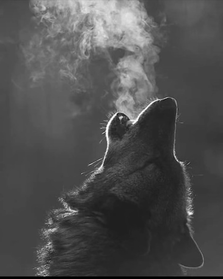 Breathing out whispers of steam.